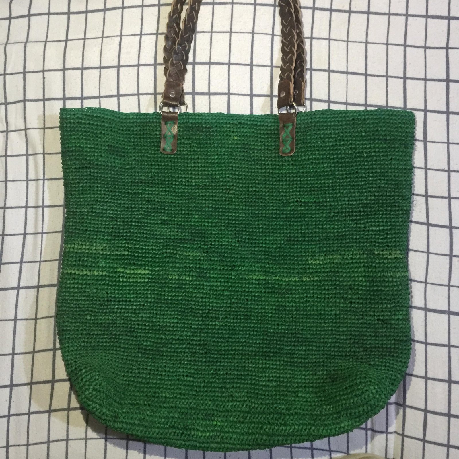 Handmade Green Raffia Tote Bag