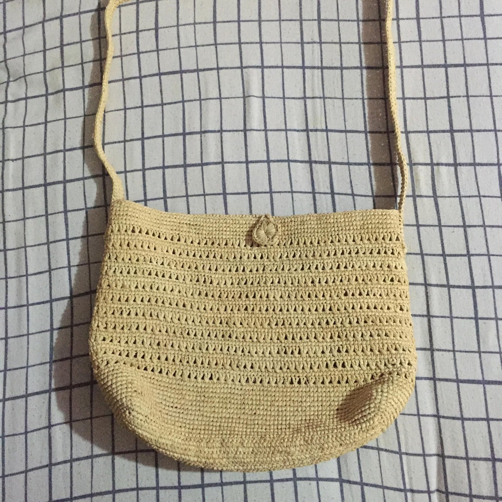 • Closure: Handmade raffia button.